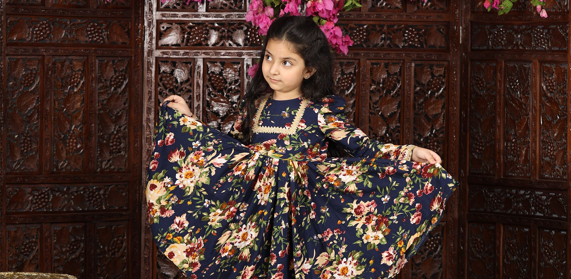 Not a good dress, on first wear only it started having fuzz on sleeves in few hours The dress color also bleeds.My daughter was wearing white stockings below it, it all turned pink.